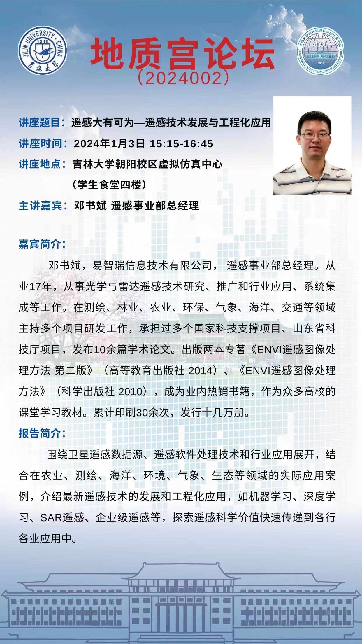 英国上市公司官网365·地质宫论坛(2024002)—易智瑞信息技术有限公司遥感事业部总经理邓书斌学术报告